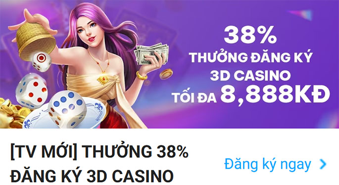 Thưởng 38% khi đăng ký 3D casino lên đến 8,888kĐ tại Fun88